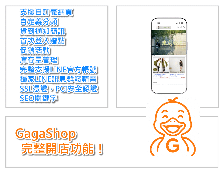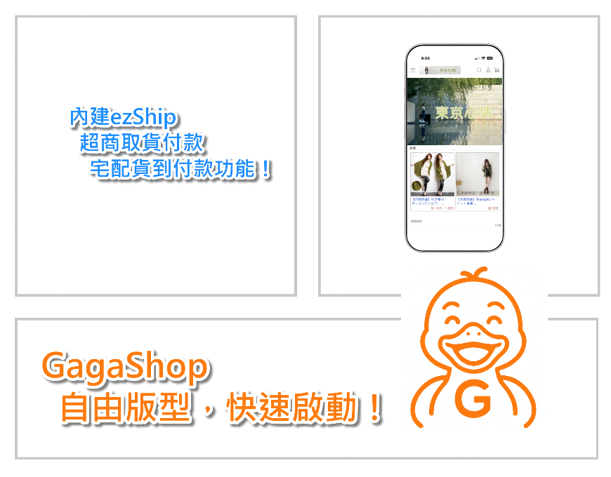 GagaShop網路開店 + LINE好友經營 + ezShip配送代收 = 有聲音的購物網站