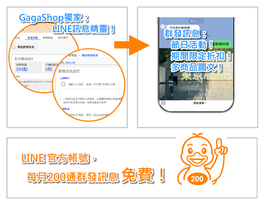 • GagaShop獨家:LINE官方帳號訊息通知精靈!